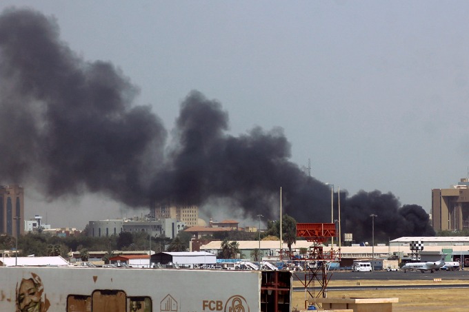Khói bốc lên từ sân bay Khartoum ngày 15/4. Ảnh: AFP