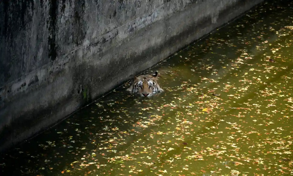 Một con hổ Bengal hoàng gia bơi tại vườn thú quốc gia Bangladesh ở Dhaka. Ảnh: Syed Mahamudur Rahman/NurPhoto/Shutterstock.