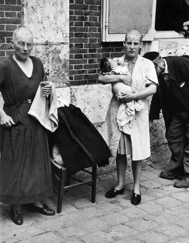 Jack Colville, phóng viên của tạp chí Time đã ghi lại những gì ông nhìn thấy hồi tháng 6/1945: "Một chiếc xe tải mui trần chạy qua trước mặt tôi trong tiếng la ó, chửi bới của đám đông người Pháp. Ở thùng xe, có khoảng 30 phụ nữ Pháp đầu cạo trọc, mặt có dấu chữ thập ngoặc Đức Quốc xã viết bằng nhựa đường. Nhiều người trong số đó khóc nức nở, số khác cúi gằm, cam chịu…".