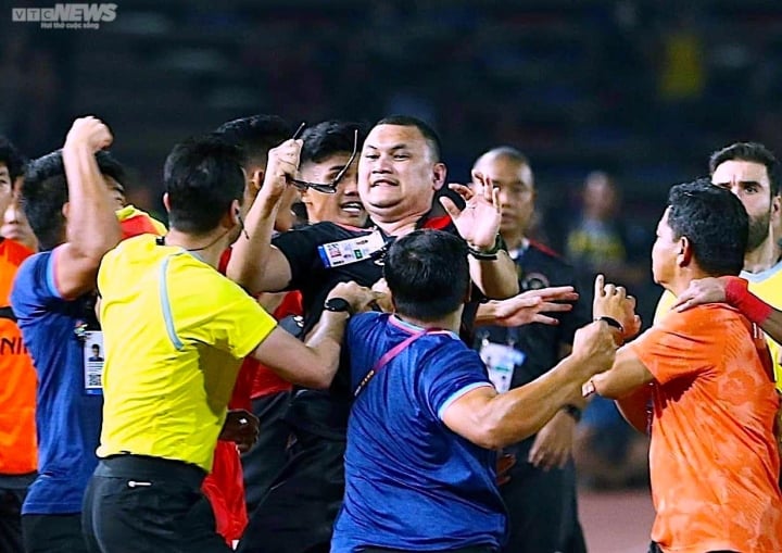 Nhiều thành viên của U22 Indonesia và U22 Thái Lan lao vào nhau.