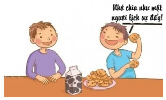 - Này, em hãy chia số bánh kia làm đôi đi. Nhớ phải chia kiểu người lịch sự đấy!
