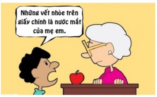 - Tại sao bài viết của em có nhiều chỗ bị nhòe mực vậy hả?