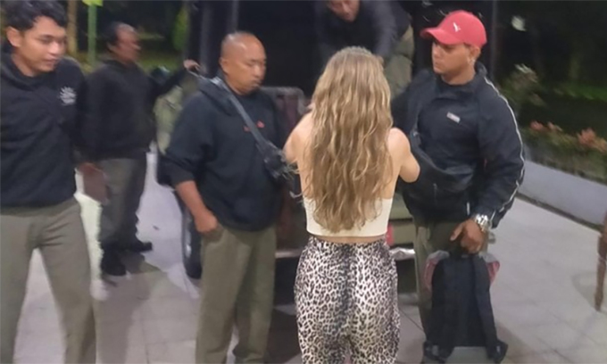 Cảnh sát Bali bắt nữ du khách Đức Darja Tuschinski. Ảnh: CNN Indonesia