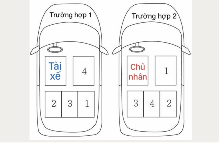 Trường hợp 1 có tài xế riêng: Người trên ngồi sau bên phải, nhỏ hơn ngồi trước hoặc giữa.