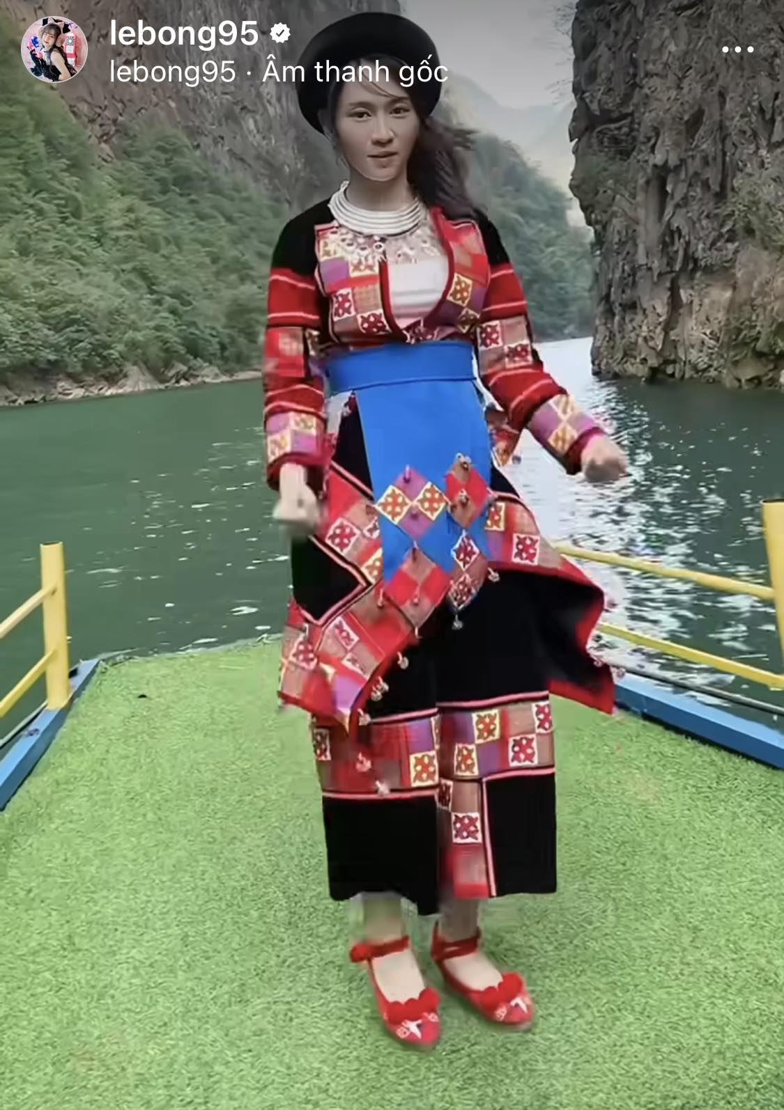 Mới đây, Lê Bống gây chú ý trên mạng xã hội khi đăng tải đoạn clip mặc trang phục dân tộc, nhảy tiktok trên thuyền ở sông Nho Quế.