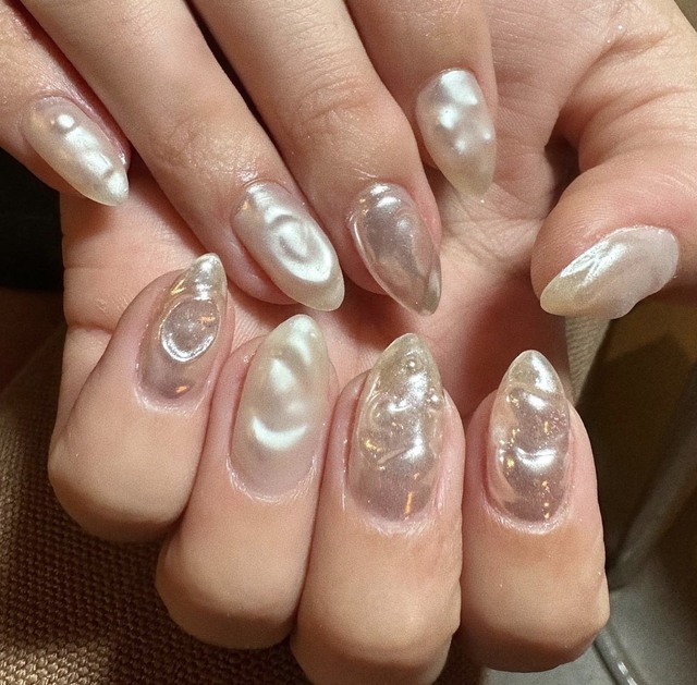 Nếu là một quý cô của sự đơn giản tinh tế, bạn hãy sử dụng kiểu nail vẽ đầu móng ánh nhũ vân ngọc trai. Tuy không cầu kì nhưng mẫu nail này đem đến cho người diện vẻ đẹp duyên dáng và phóng khoáng vô cùng.