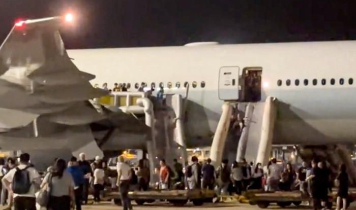 Hành khách rời máy bay bằng lối trượt thoát hiểm