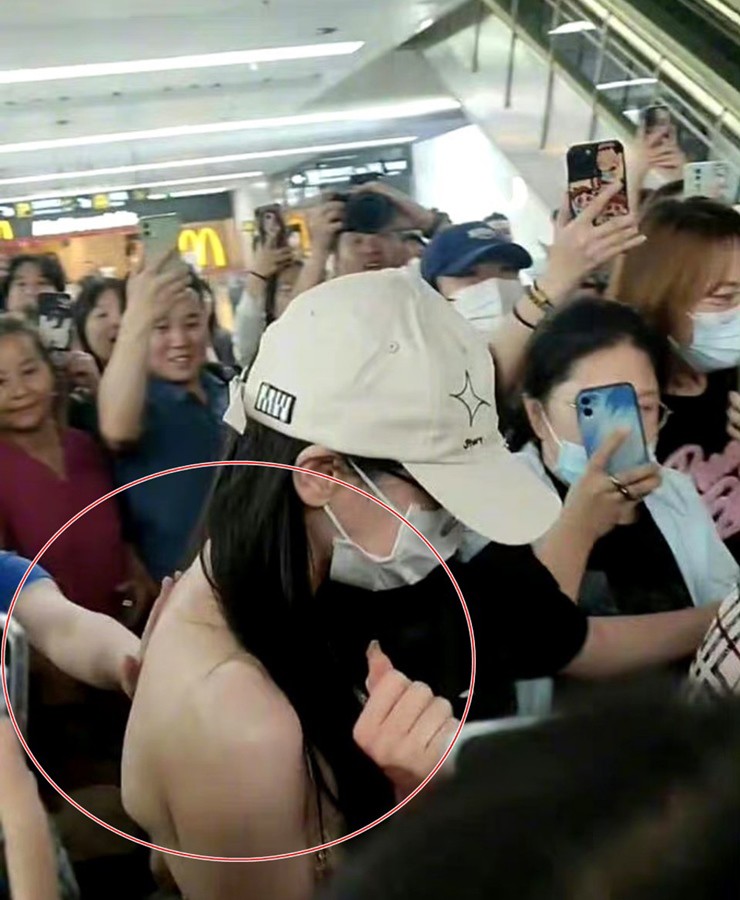 Mỹ nhân Tân Cương này diện áo hai dây có phần khoét lưng sâu, đội mũ, đeo kính râm khi đến sân bay. Rất đông người hâm mộ có mặt vây quanh cô nàng. Lúc này, một người lạ mặt đã có hành vi động chạm vào lưng trần của nữ diễn viên. Hình ảnh, clip được ghi lại, chia sẻ lên mạng xã hội gây tranh cãi.