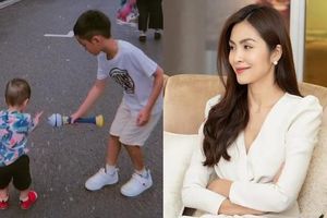 Mới đây, Tăng Thanh Hà đã cập nhật hình ảnh của hai quý tử Richard (con trai cả) và Mason (con trai út) lên phần nhật ký tài khoản Instagram. Lâu lâu mới xuất hiện, cậu út nhà nữ diễn viên nay đã lớn hơn rất nhiều, có thể tung tăng chạy nhảy, chơi đùa trên phố cùng anh trai. Trong khi đó, Richard cực kỳ ra dáng anh lớn, luôn kề cận bên em trai, dùng đồ chơi tạo bong bóng khiến cậu bé thích thú.