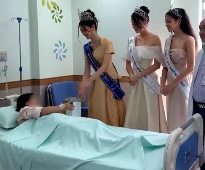Hình ảnh các nàng hậu Miss World Vietnam 2023 thăm bệnh nhân ở bệnh viện 5 sao đang "gây bão" trên mạng xã hội.