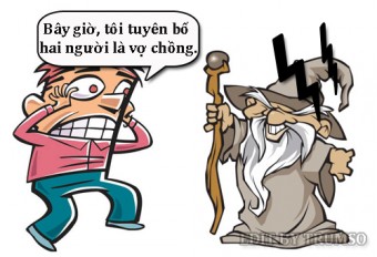 - Thưa, đó là câu: "Bây giờ, tôi tuyên bố hai người là vợ chồng".