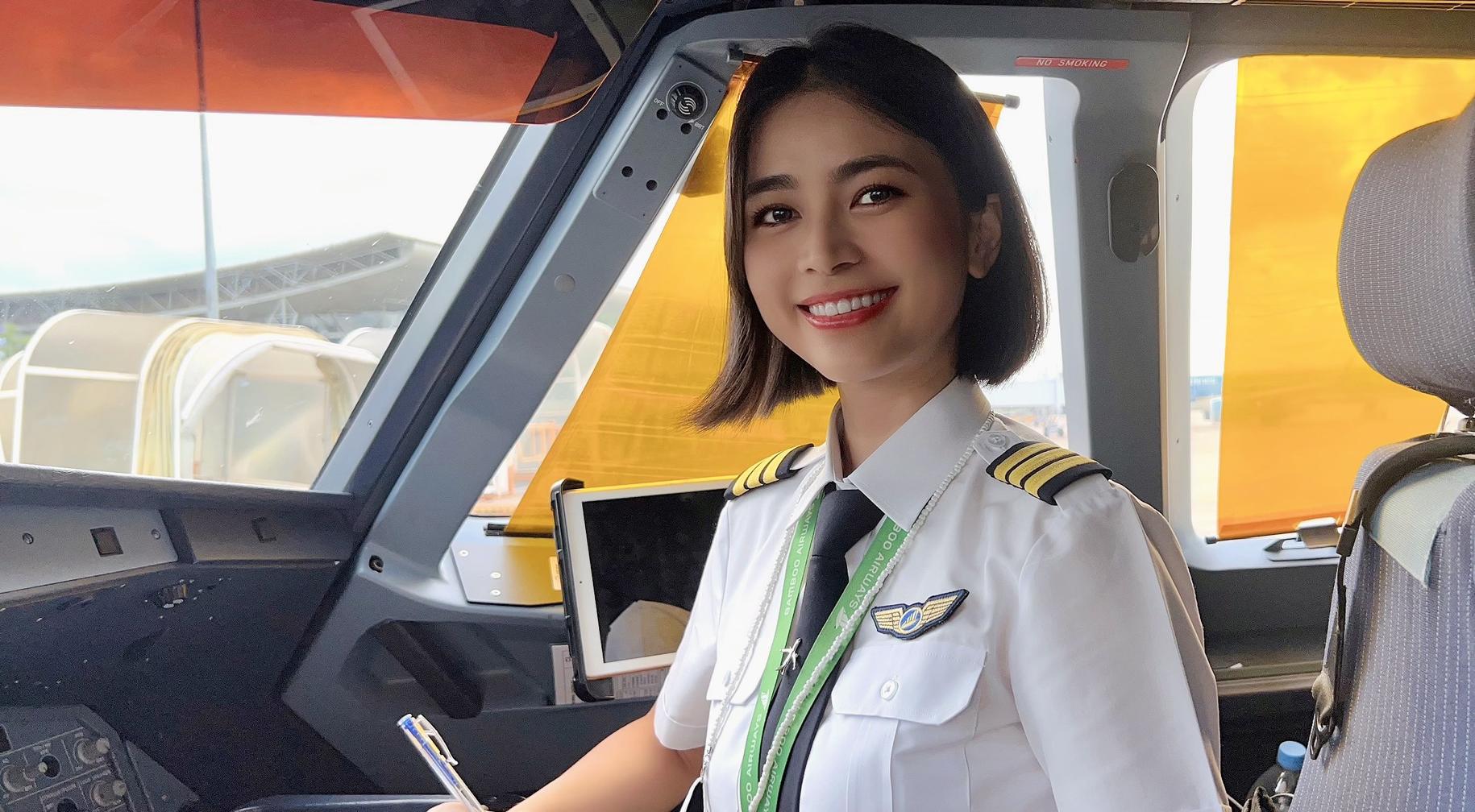 Diệu Thúy với vai trò cơ phó của một hãng hàng không tại Việt Nam.