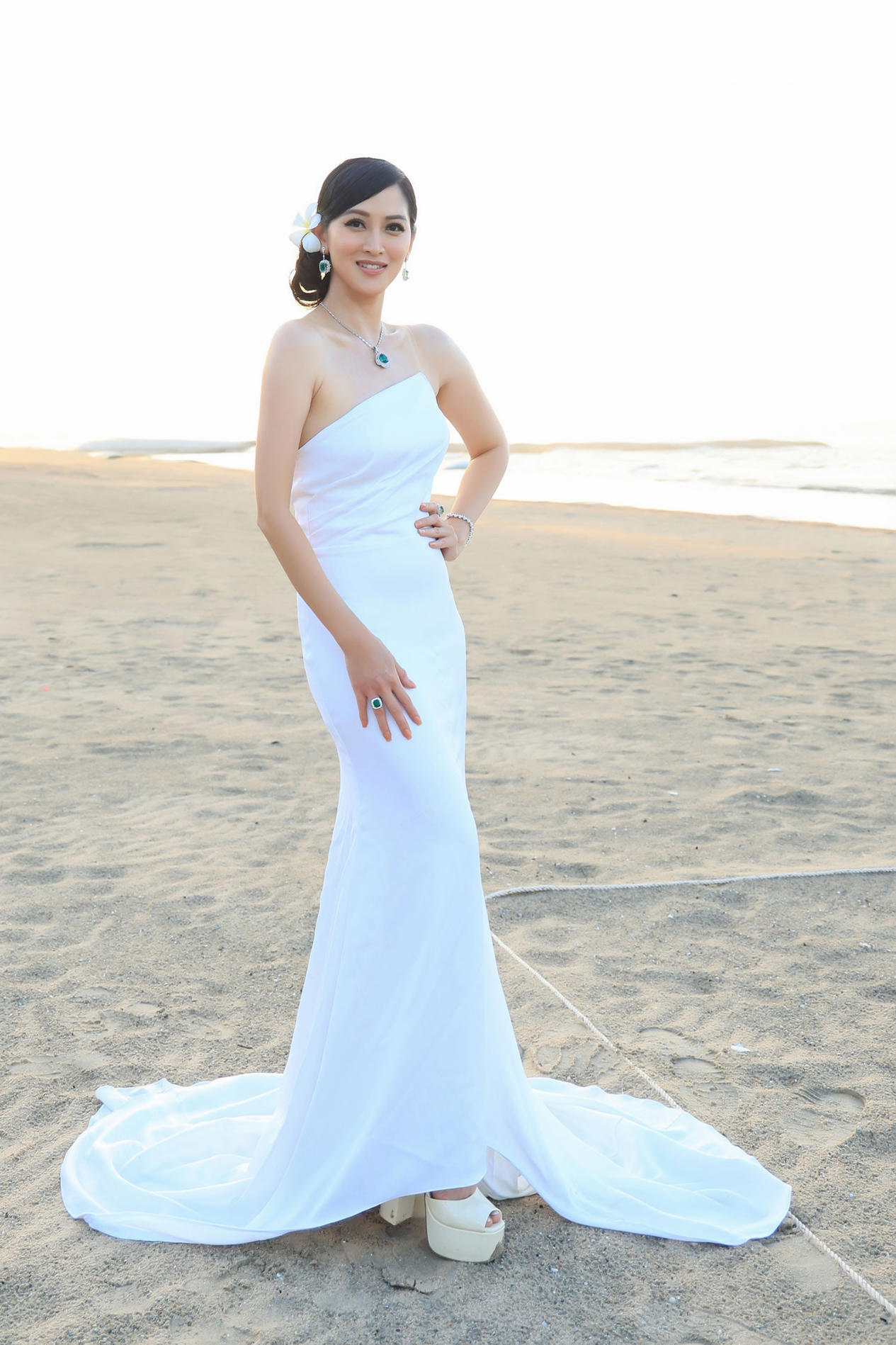 Dù mang trang sức đắt tiền nhưng Elizabeth Thủy Tiên không lựa chọn trang phục từ một thương hiệu lừng danh nào mà chọn Đức Vincie bởi "yêu mến tài năng của nhà thiết kế này".