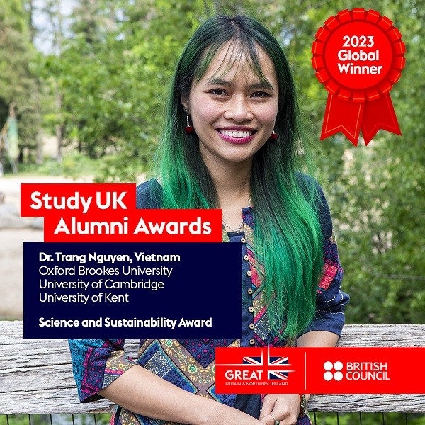 Nữ tiến sĩ Việt giành Giải thưởng Cựu sinh viên Vương quốc Anh toàn cầu. Trang Nguyễn - nhà sáng lập và Giám đốc điều hành Trung tâm hành động vì Động vật hoang dã Việt Nam (WildAct), vừa xuất sắc giành Giải thưởng Cựu sinh viên Vương quốc Anh (Study UK Alumni Awards) với hạng mục Khoa học và Phát triển bền vững.