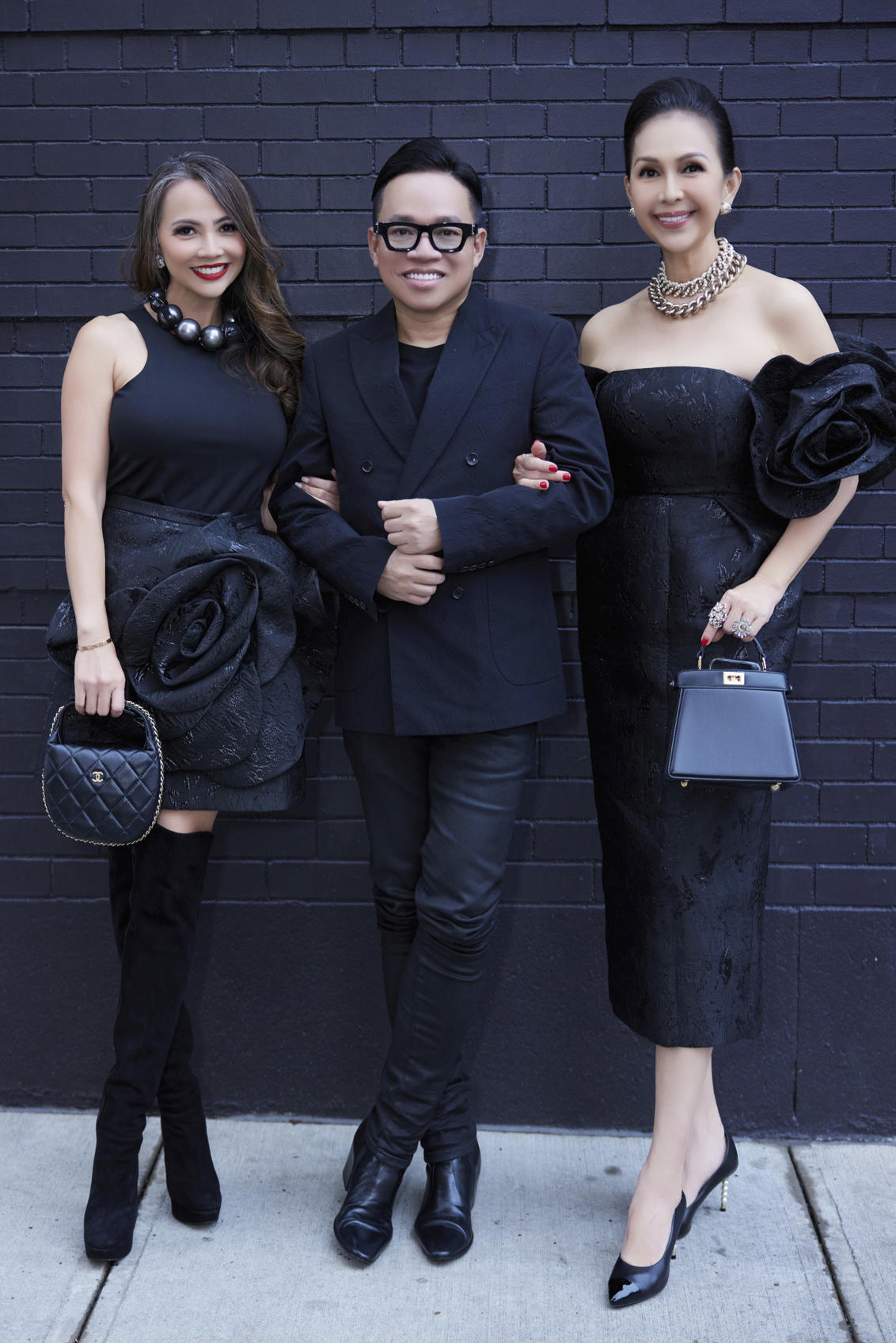 Diễn viên Ninh Dương Lan Ngọc, Diễm My, á hậu Kim Duyên diện đầm đen dự tiệc trước show Đỗ Mạnh Cường ở New York.