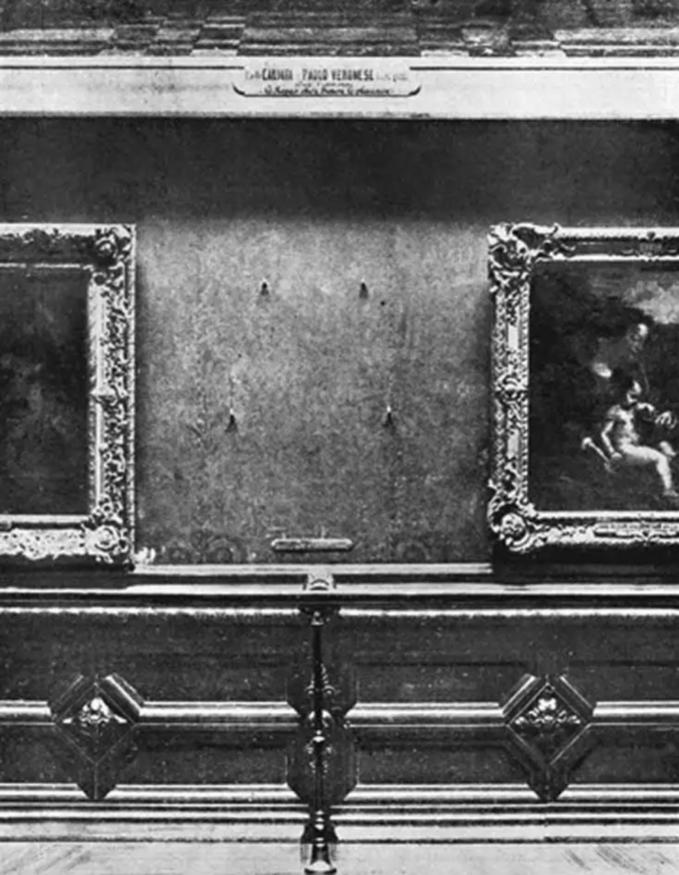 Khoảng trống trên bức tường Louvre nơi bức Mona Lisa từng được treo trước khi bị đánh cắp. Ảnh: Vintage Everyday