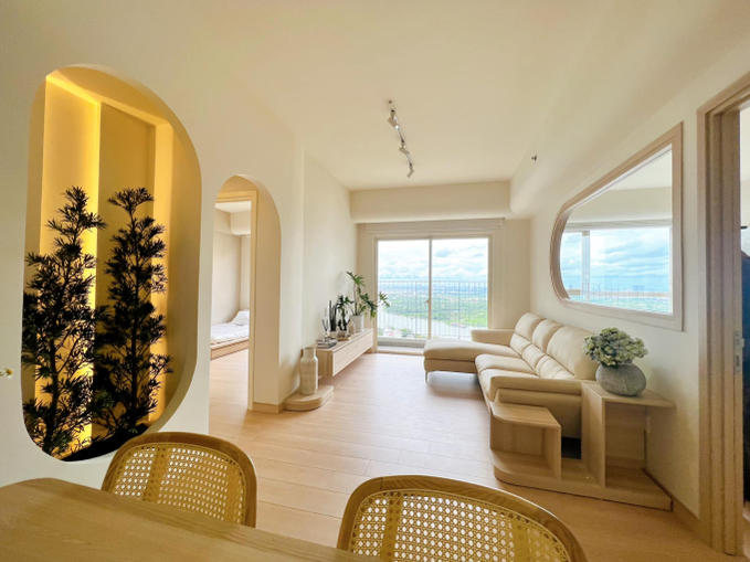Căn nhà mới của Ngô Thanh Vân và Huy Trần có diện tích 79m2 với 2 phòng ngủ và 1 phòng khách. Ban đầu, căn nhà được thiết kế theo phong cách đơn giản với gam màu xám đen tạo cảm giác lạnh lẽo và chật chội hơn. Do đó, cô và chồng quyết định cải tạo lại với tông màu trắng - be và kết hợp thêm cây xanh để tạo điểm nhấn tươi sáng và ''chill'' hơn.