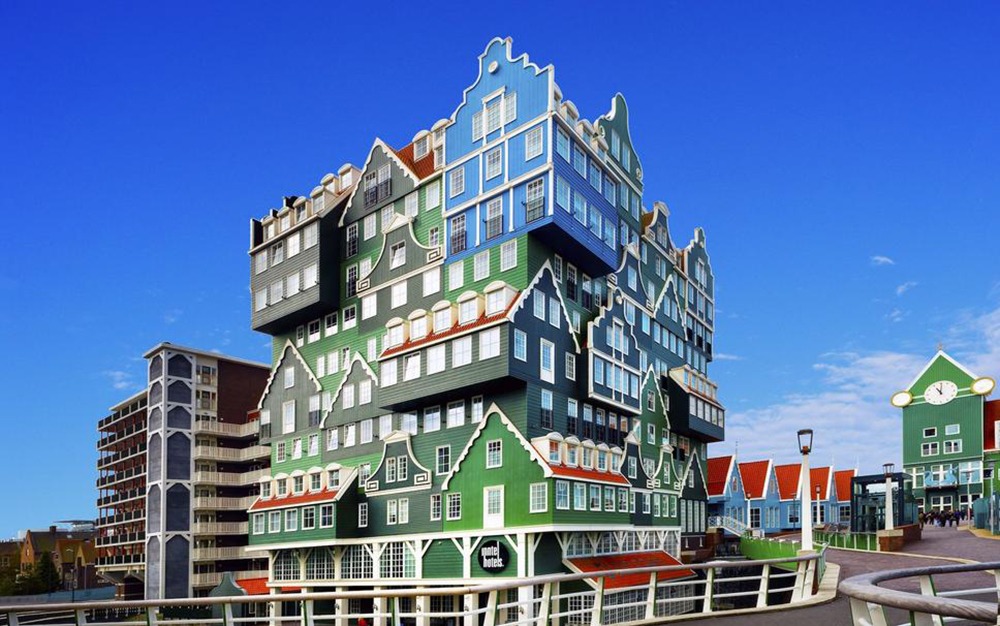Khách sạn Inntel Amsterdam Zaandam cao 12 tầng, được sơn phủ bên ngoài bởi hai màu chủ đạo: xanh lam và xanh lá nhằm thể hiện sự tôn kính đối với bức tranh Ngôi nhà màu xanh, kiệt tác họa hội nổi tiếng của Monet. Bức tranh này đã được hoàn thành ở Zaandam năm 1871.