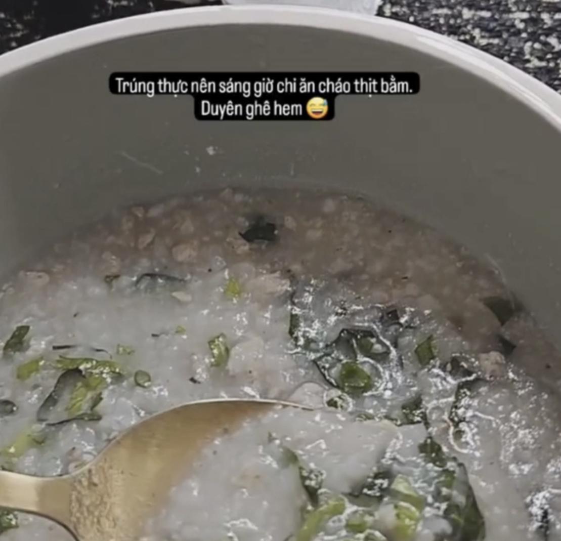 Thanh Hằng cho biết vì trúng thực nên từ sáng đến giờ cô chỉ ăn cháo thịt bằm
