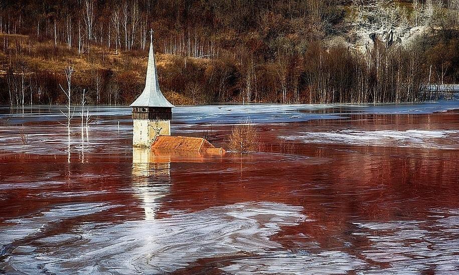 Lấp ló trên mặt bùn và dòng nước không biết chảy về đâu, người ta nhìn thấy mái chóp của một nơi thiêng liêng, nơi từng là chốn tụ tập của những người dân sinh sống nơi đây - nhà thờ địa phương. Một ngày nào đó, phần mái nhà thờ này cũng có thể biến mất. Nhưng cho đến ngày nay, nó vẫn là bằng chứng duy nhất cho thấy, dưới lớp bùn độc này từng có một ngôi làng xinh đẹp tên là Geamana.