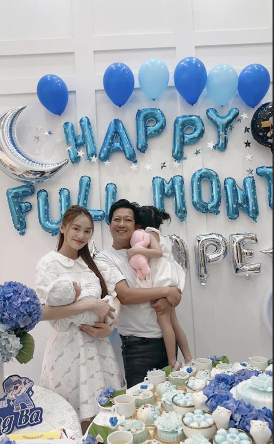 Gia đình 4 người của Nhã Phương - Trường Giang đã có buổi tiệc đầy tháng ấm cúng cho cậu út tại nhà riêng.