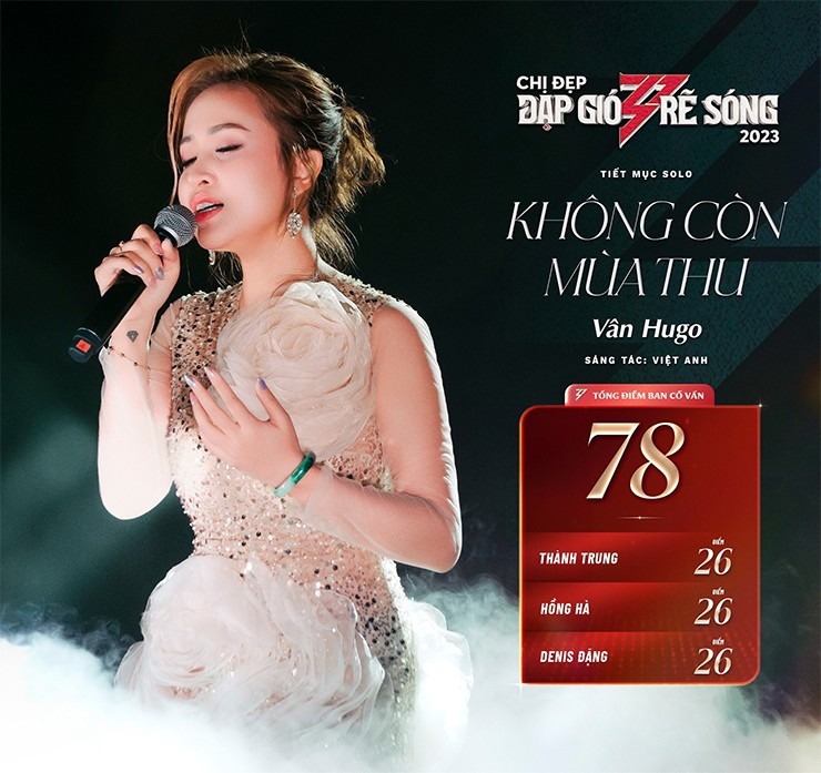 Không chỉ khiến dân mạng trầm trồ vì vẻ ngoài trẻ trung ở tuổi 38, nữ diễn viên còn được khen ngợi về giọng hát khi thể hiện ca khúc "Không còn mùa thu". Cô nhận tổng điểm 78 từ ba giám khảo. Các “chị đẹp” trong chương trình cũng bày tỏ sự ngạc nhiên khi lần đầu nghe Vân Hugo hát. Với tư cách người nghe, nhạc sĩ Huy Tuấn đưa ra nhận xét: “Em hát tốt hơn số điểm của em rất nhiều”.