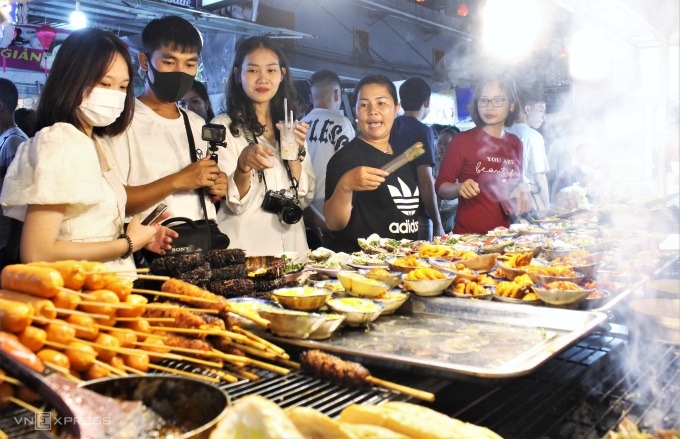 Du khách thưởng thức ẩm thực tại chợ đêm Phú Quốc. Ảnh: Huỳnh Nhi