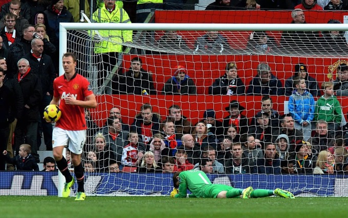 Thủ môn De Gea và trung vệ Jonny Evans thất vọng sau khi Man Utd bị Yohann Cabaye chọc thủng lưới trong trận thua Newcastle 0-1 ở Ngoại hạng Anh trên sân Old Trafford ngày 9/12/2013. Ảnh: PA