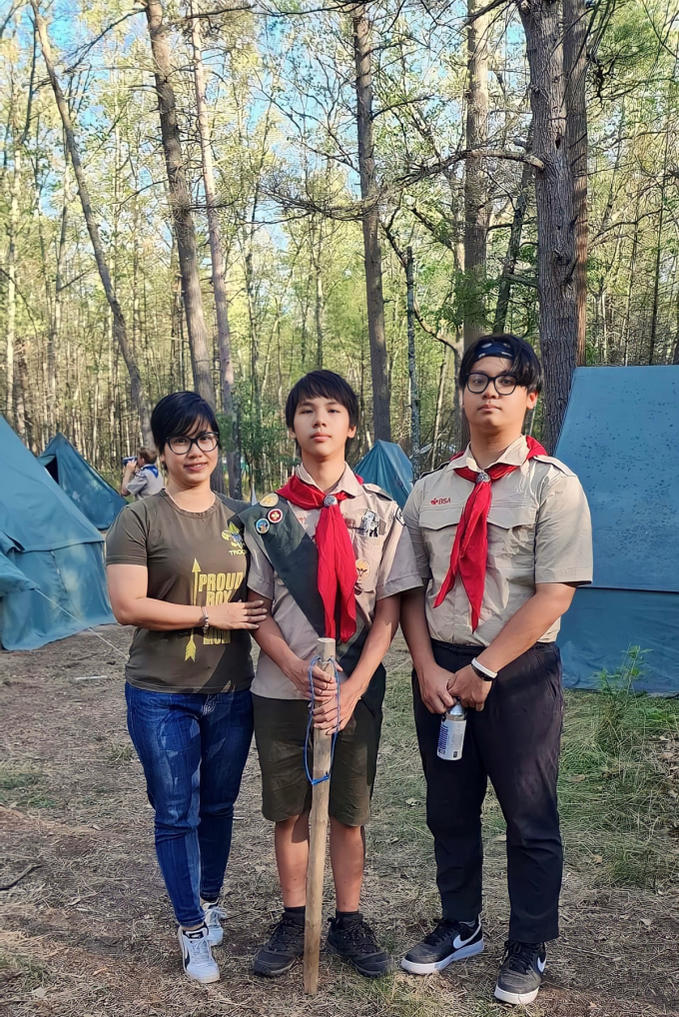 Chị Liên và hai con tham gia trại trong rừng 8 ngày, đêm tại bang Michigan với học sinh Mỹ, năm 2022. Ảnh: Nhân vật cung cấp