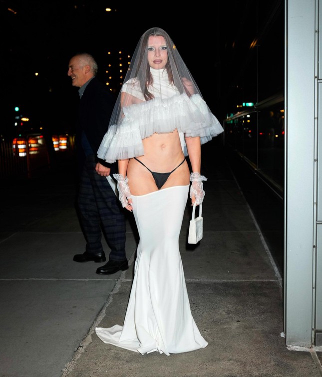 Julia Fox tiếp tục gây sốc với bộ váy cưới "mặc như không". Ảnh: TheImageDirect.com