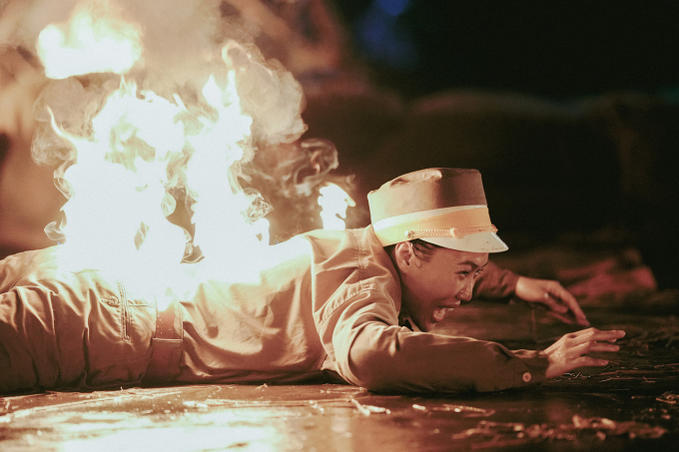 Đạo diễn Nhất Trung cho biết ban đầu bàn phương án sử dụng diễn viên đóng thế, tuy nhiên Diệu Nhi từ chối để bản thân có trải nghiệm, sống trọn cùng nhân vật. Trước khi quay, êkíp chuẩn bị kỹ đồ bảo hộ, song sau khi hoàn thành phân đoạn, Diệu Nhi bị một vết bỏng ở chân vì lửa cháy to hơn dự kiến.