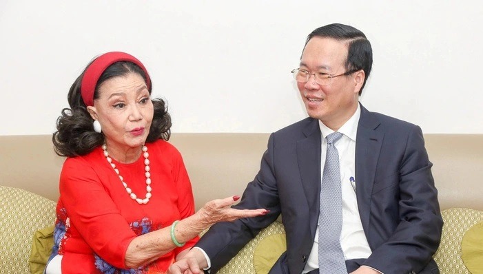 Trao đổi với NSND Kim Cương, Chủ tịch nước Võ Văn Thưởng tri ân những cống hiến, quá trình lao động của nghệ sĩ Kim Cương cho nền văn hóa của đất nước.