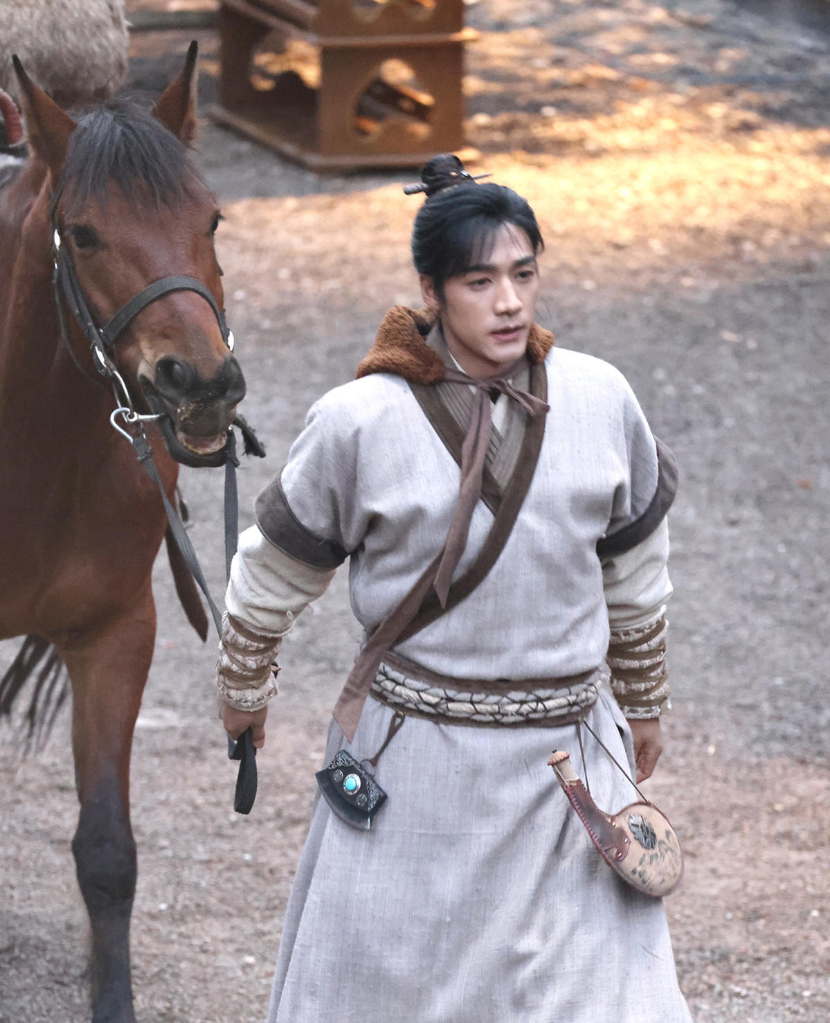 Thử Sa trên trường quay. Diễn viên 27 tuổi, quê tỉnh Tứ Xuyên, sở trường bắn cung, cưỡi ngựa. Thử Sa từng đóng vai phụ trong Ngự giao kư, Ngọc cốt giao.