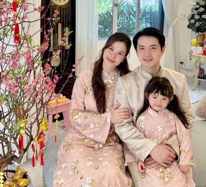 Gia đình Đông Nhi diện áo dài đón Tết Giáp Thìn. Ảnh: Nhân vật cung cấp