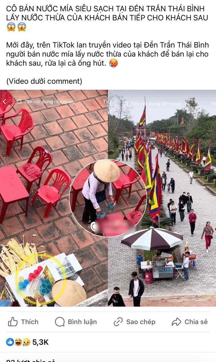Liên quan tới vụ việc, trao đổi trên PLO trưa 16/2, thượng úy Bùi Trung Thành – Trưởng Công an xã Tiến Đức (huyện Hưng Hà, tỉnh Thái Bình) cho biết, sáng cùng ngày, khi nắm được thông tin trên mạng xã hội phản ánh về một người phụ nữ lấy nước mía thừa của khách trước bán lại cho khách sau ở Đền Trần, đơn vị đã vào cuộc xác minh và yêu cầu quán nước mía này tạm dừng hoạt động.