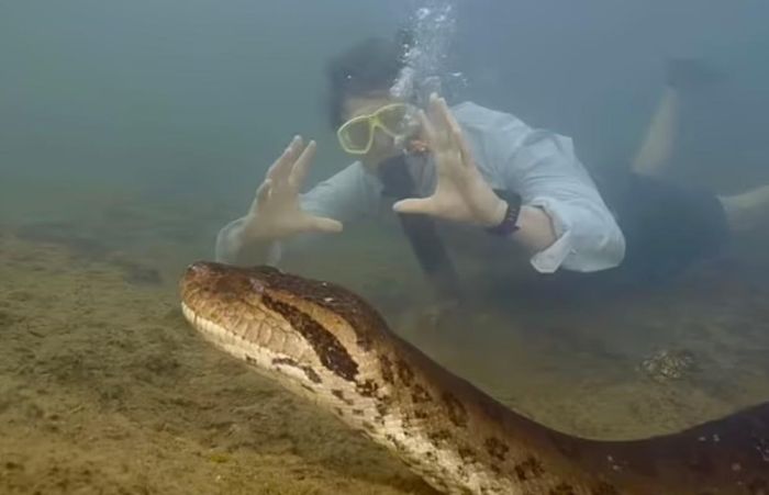 Tờ Mail Online của Anh đã đăng video ghi lại cảnh các nhà khoa học lặn cạnh con trăn Anaconda xanh phương Bắc khi nó đang bơi dưới một con sông nằm trong rừng nhiệt đới Amazon.