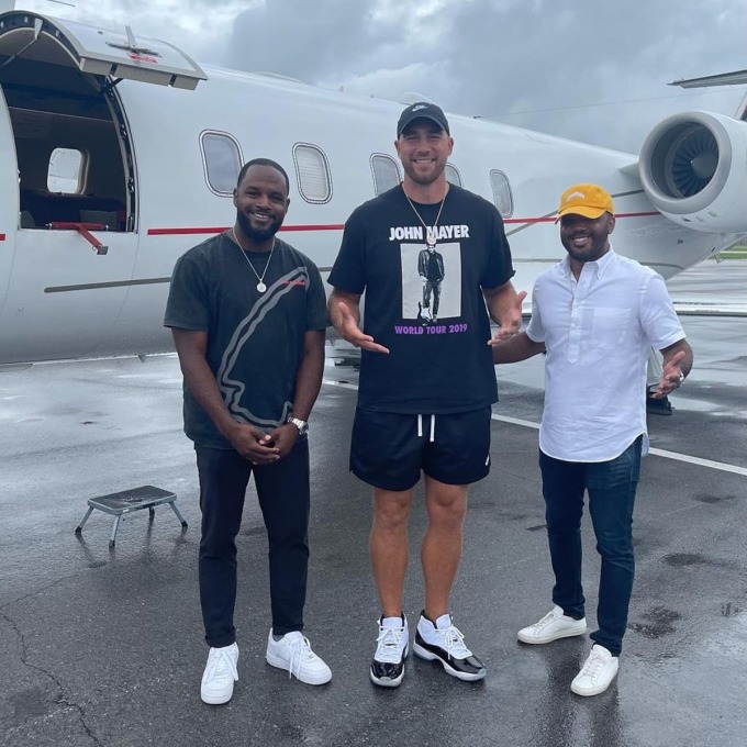 Travis Kelce (giữa) chụp hình cùng André (phải) và Aaron Eanes (trái). Ảnh: Instagram André A Eanes