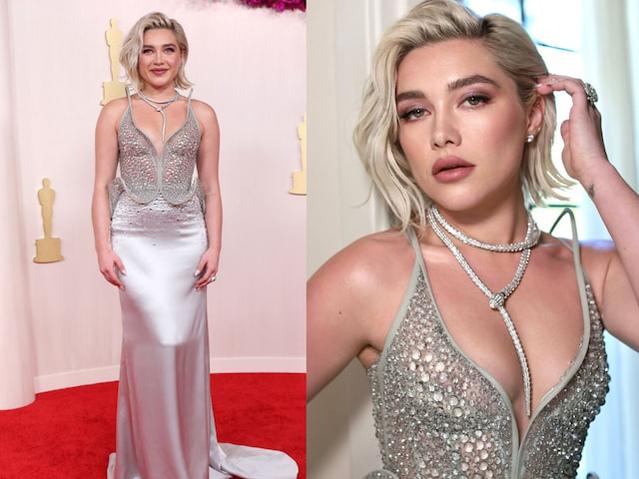 Florence Pugh và Becky G đều chọn trang phục "lấp ló" cho Oscar 2024. Ảnh: People.