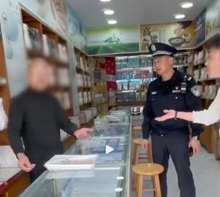 Chủ cửa hàng xúc phạm cô gái đang đi cùng người yêu (ngoài cùng bên phải), một cuộc tranh cãi gay gắt nổ ra và cảnh sát phải đến giải quyết. (Ảnh: Douyin)