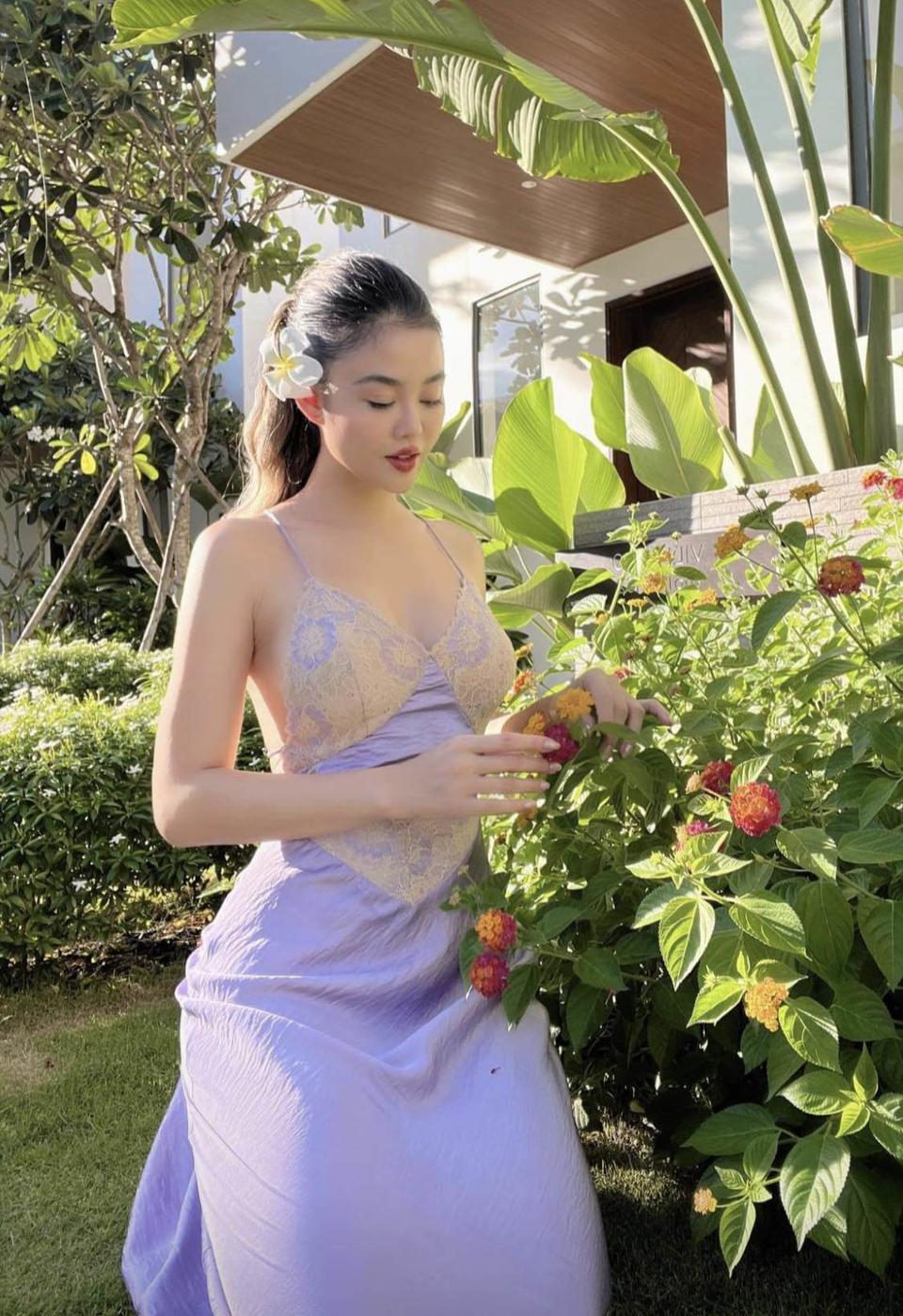 Là một mỹ nhân có gu ăn vận tôn hình thể, sau khi làm mẹ, người đẹp được nhận xét có phong cách thời trang trưởng thành và quyến rũ hơn. Một trong những thiết kế mà Julia Hồ vô cùng yêu thích là váy lụa, phối ren, dáng dài, hở lưng nhằm phô diễn tối đa đường cong nóng bỏng.