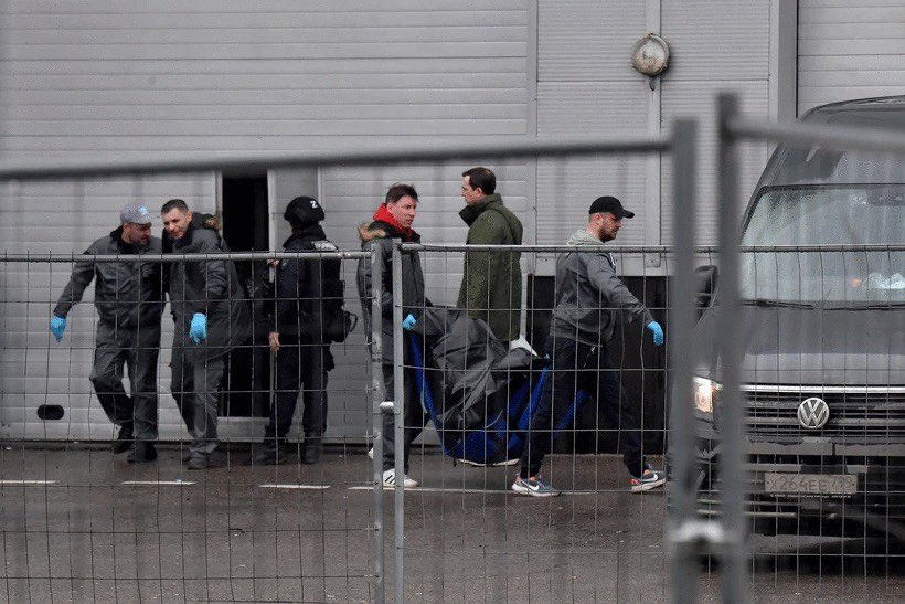Lực lượng thực thi pháp luật Nga chuyển thi thể nạn nhân tại hiện trường vụ tấn công trung tâm thương mại Crocus ở Moscow, ngày 23/3/2024. Ảnh AFP