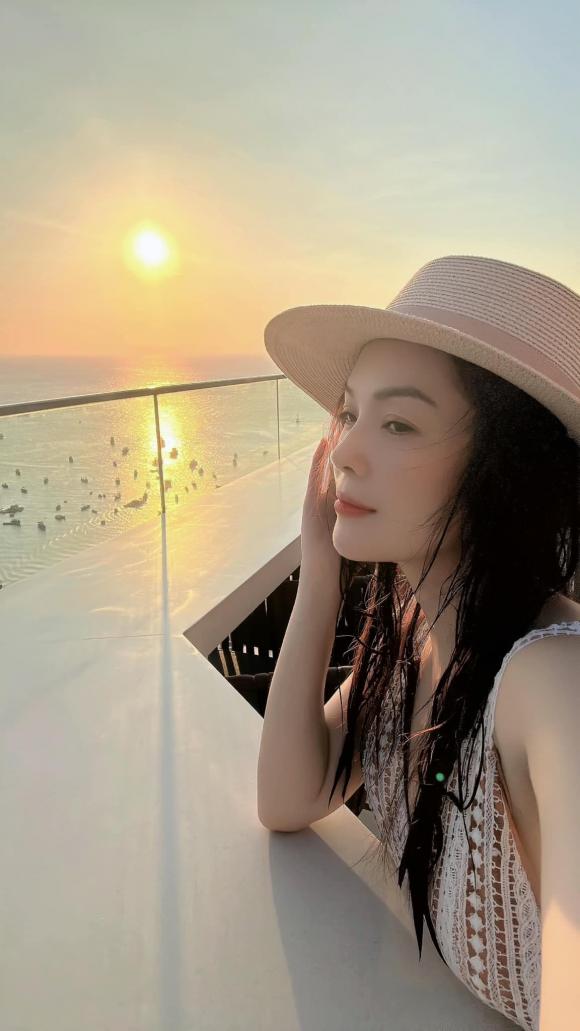Nữ diễn viên mới đây đã xả kho ảnh đi du lịch cùng hai nhóc tì nhà mình. Nữ diễn viên còn tiết lộ sau nhiều năm mới dám thử diện lại bikini khi đến nới nắng vàng biển xanh. Cô viết: "Đầu tuần nhiều năng lượng vì cuối tuần bị hai anh nhỏ cho Mẹ bơi phơi nắng nhiều quá".