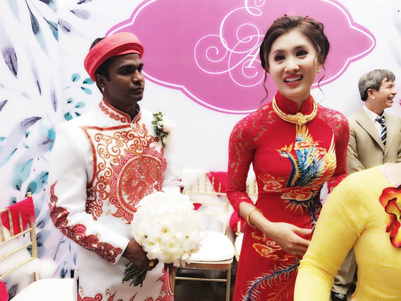 Nguyệt Ánh và chồng Ấn Độ trong đám cưới năm 2017.