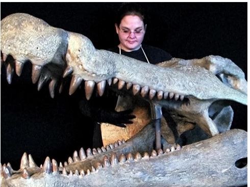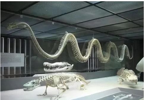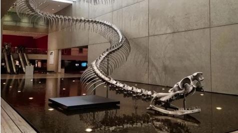 Bản sao này dài gần 15 mét, nặng hơn 1.100 kg, đường kính thân gần 1 mét và đang nuốt chửng một con cá sấu lớn. Bản sao này từng được trưng bày tại Nhà ga Grand Central của New York, gây chấn động và sốc.