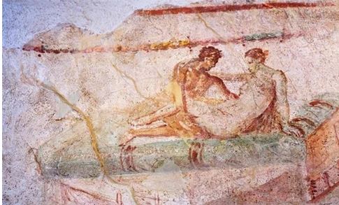 Cảnh quan hệ tình dục trong bức bích họa cổ ở tòa nhà Casa delle Lupanare, Pompeii