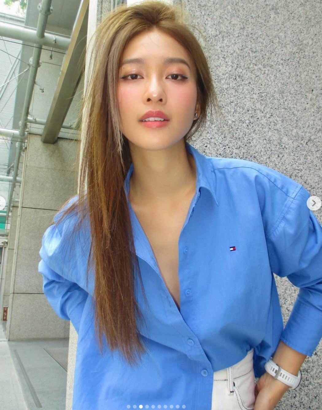 Biết rõ lợi thế hình thể của mình, Khả Ngân cũng thường xuyên chọn diện những kiểu đồ mong manh, tôn đươc nét đẹp bản thân. Mới đây nữ nghệ sĩ tiếp tục nhận về nhiều chú ý khi khoe dáng trong set đồ gồm áo sơ-mi hở nút, để lộ lấp ló thềm ngực căng đầy.