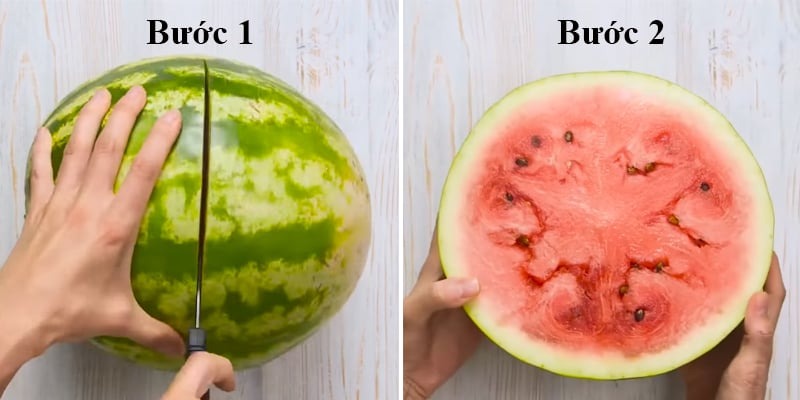 Bước 2: Sau đó lật mặt cắt của nửa quả dưa ngửa lên trên