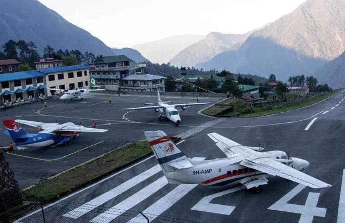 Địa hình hiểm trở và điều kiện thời tiết khắc nghiệt khiến Sân bay Lukla trở thành một trong những sân bay nguy hiểm nhất thế giới. Từ thủ đô Kathmandu chỉ bay khoảng chừng 30 phút là tới Lukla. Đa số các chuyến bay đều được thực hiện vào sáng sớm hoặc thỉnh thoảng là tối, lúc đó trời quang mây tạnh nhất. Thời gian máy bay hạ cánh khá nhanh, thường chỉ 10 giây.