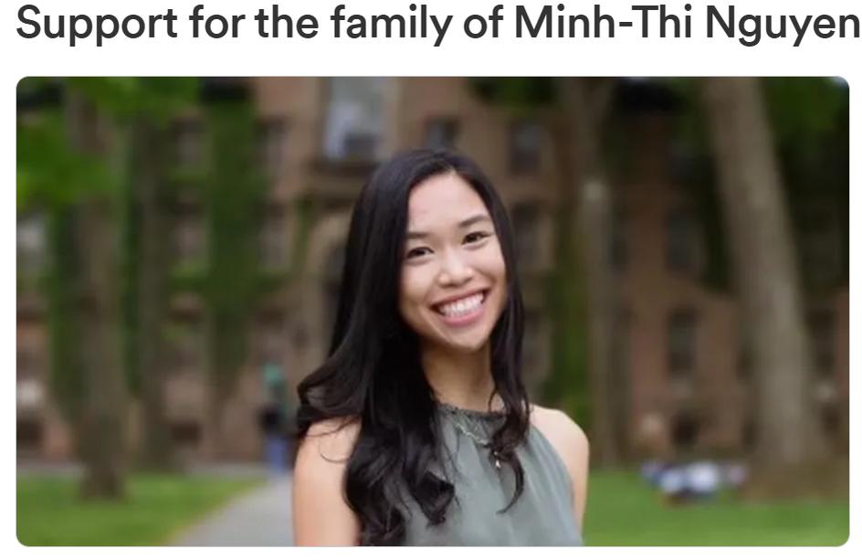 Theo bản tin của CBS Boston, Một người đi xe đạp bị xe vận tải đụng chết hôm thứ Sáu ở Cambridge đã được xác định là sinh viên Minh-Thi-Nguyễn 24 tuổi đang theo học tiến sĩ vật lý tại đại học MIT ở Cambridge, Massachussetts. Cô Minh-Thi Nguyễ, đang đạp xe qua ngã tư đường Hampshire và Portland vào sáng thứ Sáu thì một chiếc xe vận tải rẽ phải vào Phố Portland và đụng vào xe đạp của cô. Cô được đưa đến Bệnh viện Mass General Hospital, nơi cô qua đời vì vết thương. Tài xế xe vận tải vẫn ở hiện trường. Minh-Thi-Nguyễn Nguyên là sinh viên theo đuổi bằng tiến sĩ Ph.D vật lý tại đại học MIT. Trước đây cô Minh Thị Nguyễn ra trường cử nhân tại đại học Princeton. Hoa đã được đặt tại ngã tư nơi Minh-Thị Nguyễn qua đời. Cái chết của cô đã làm cho những người đi xe đạp ở Cambridge đau buồn và kêu gọi thành phố phải làm nhiều hơn nữa để bảo vệ những người đi xe đạp. Christopher Cassa, tình nguyện viên của nhóm an toàn xe đạp Cambridge, cho biết: “Khi biết rằng đó là một ai đó 24 tuổi, một sinh viên tiến sĩ tại đại học MIT với cả cuộc đời tươi đẹp phía trước, thật là đau lòng”. Cảnh sát cho biết cuộc điều tra vụ tai nạn đang tiến hành. Buổi cầu nguyện tưởng nhớ sinh viên Minh Thị Nguyễn sẽ được tổ chức vào tối thứ Hai tại ngã tư nơi cô bị đụng xe. Những người bạn của sinh viên Minh-Thi Nguyễn đang gây quỹ trên trang GoFundMe để giúp cho gia đình cô lo chi phí tang lễ và hỗ trợ họ trong lúc khó khăn này. Quý vị có thể giúp cho gia đình của sinh viên Minh-Thị Nguyễn tại trang web: