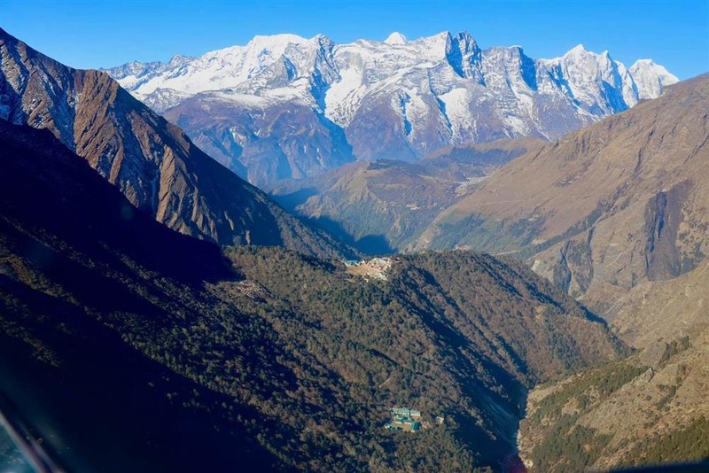 "Trực thăng bay vừa đủ cao để du khách chiêm ngưỡng những đỉnh núi cao nhất thế giới ở dãy Himalaya. Có những lúc tôi cảm giác máy bay suýt chạm vào đỉnh núi, rồi có thời điểm lại tưởng như sắp lộn nhào giữa không trung, giữa những sườn núi cao chót vót. Cảnh tượng đủ làm tim muốn rớt ra ngoài”, nữ du khách nhớ lại.